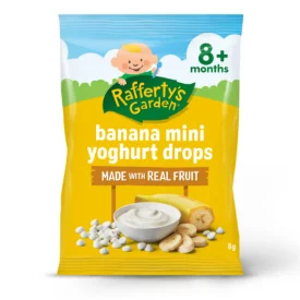 A tasty blend of real fruit & natural yoghurt, made into tiny droplets. With an easy to dissolve texture and no artificial colours or flavours, they’re a great snack to introduce to babies who can self-feed.